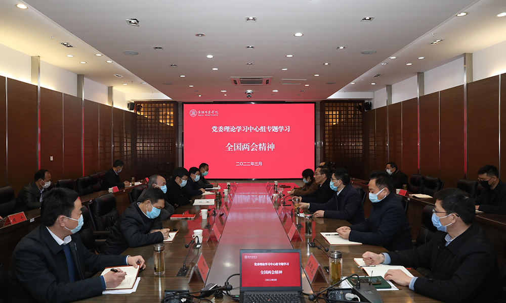 图为校党委理论学习中心组专题学习全国两会精神。记者 唐瑀 摄