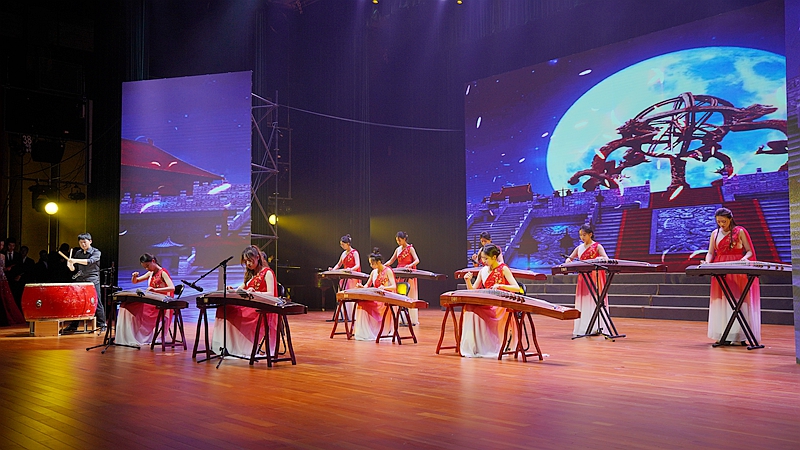 征程浩荡满目新,奋楫远航正当时。古筝齐奏《盛世国乐》曲调婉转,展示中华民族文化恒久魅力,焕发当代中国新时代风采;对唱《是妈妈是女儿》温馨感人,展现母女间绵绵不尽的情愫;诗朗诵《陪我长大 陪你变老》感恩动人心弦的珍贵亲情,令人潸然泪下,自强不息的身影留给人深刻印象;舞蹈《画卷》配合默契、整齐划一,诠释昂扬少年的斗志豪情;大合唱《孤勇者》满怀赤诚,歌颂在逆光中不改颜色的中国英雄;舞蹈《红色英雄》铿锵有力,再现英雄为国铸盾、为国铸魂的英勇风采。