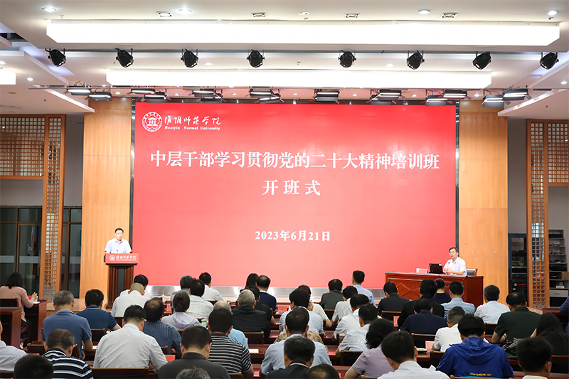 淮师新闻网6月22日电(记者 宋超)为深入学习贯彻落实党的二十大精神,不断推进学习贯彻习近平新时代中国特色社会主义思想主题教育走深走实,6月21日,淮阴师范学院中层干部学习贯彻党的二十大精神培训班在长江路校区图书馆多功能厅开班。校党委书记尚洪波出席开班式并作动员讲话。校党委副书记、党校校长韩同友主持开班式。