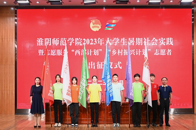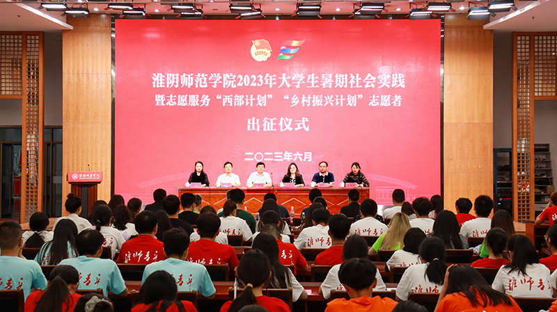 淮师新闻网6月22日电(记者 夏振华 吴萱)6月21日下午,淮阴师范学院2023年大学生暑期社会实践暨志愿服务“西部计划”“乡村振兴计划”志愿者出征仪式在长江路校区图书馆多功能厅举行。副校长闫超栋,党委宣传部、党委学工部、教务处、团委等部门负责人,二级学院团委书记,实践团指导教师及学生代表出席本次出征仪式。