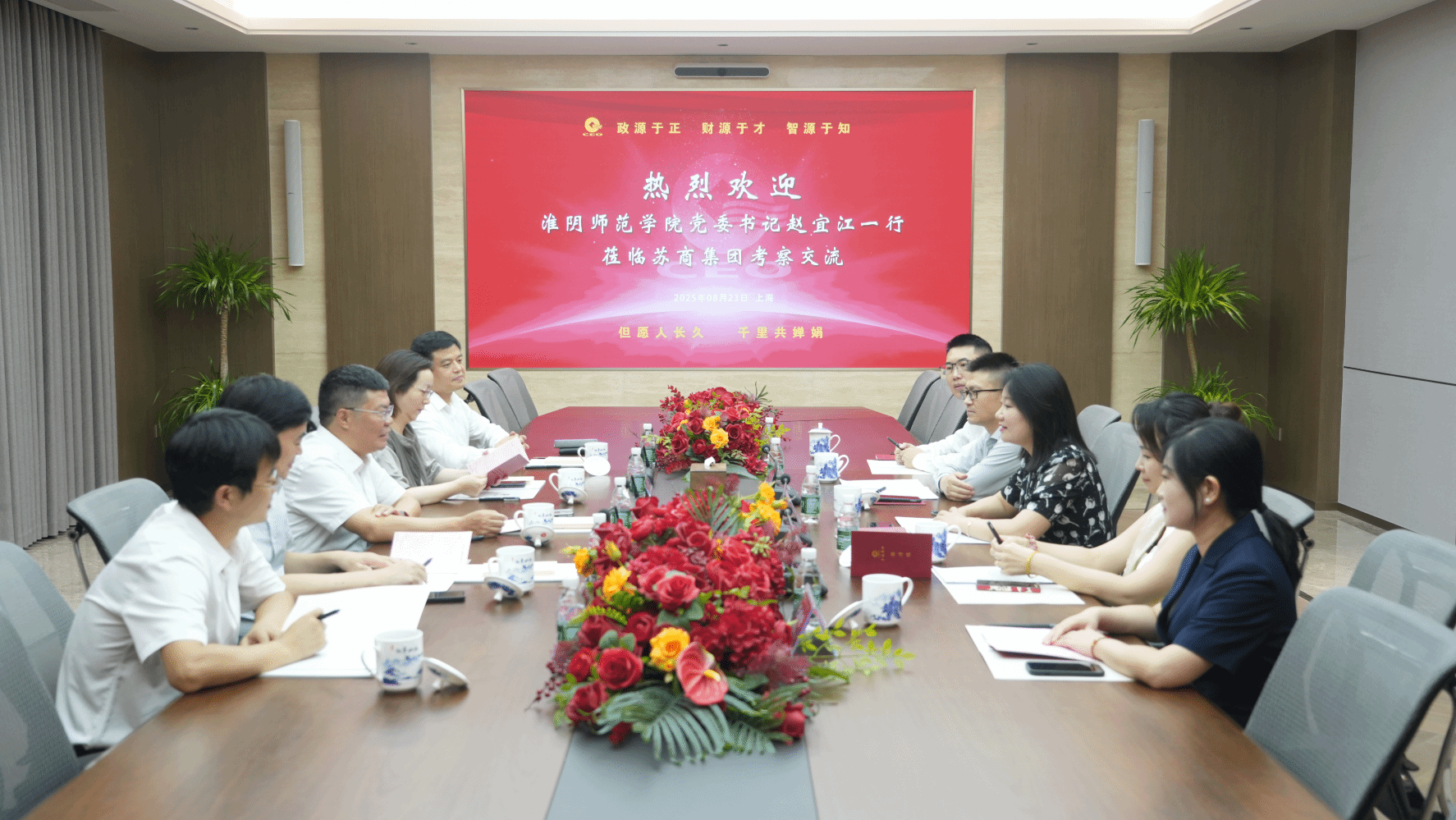 俞文介绍了苏商集团最新发展概况、产业布局、企业文化。她表示,苏商集团与淮阴师范学院渊源情厚,集团发轫于淮安,与淮师文化相通、人缘相亲;近年来,数十位淮师毕业生扎根苏商集团,成长为各条业务线的中坚力量,地缘、人缘、情缘多重交织,使校企合作根基坚实、水到渠成。苏商集团长期聚焦“五化”人才培养,高度重视优质人才储备与梯队建设,希望能与淮师进一步加强合作,共同探索实习就业、人才共育与产学研融合新机制,真正实现产业实践与教育培养的同频共振。