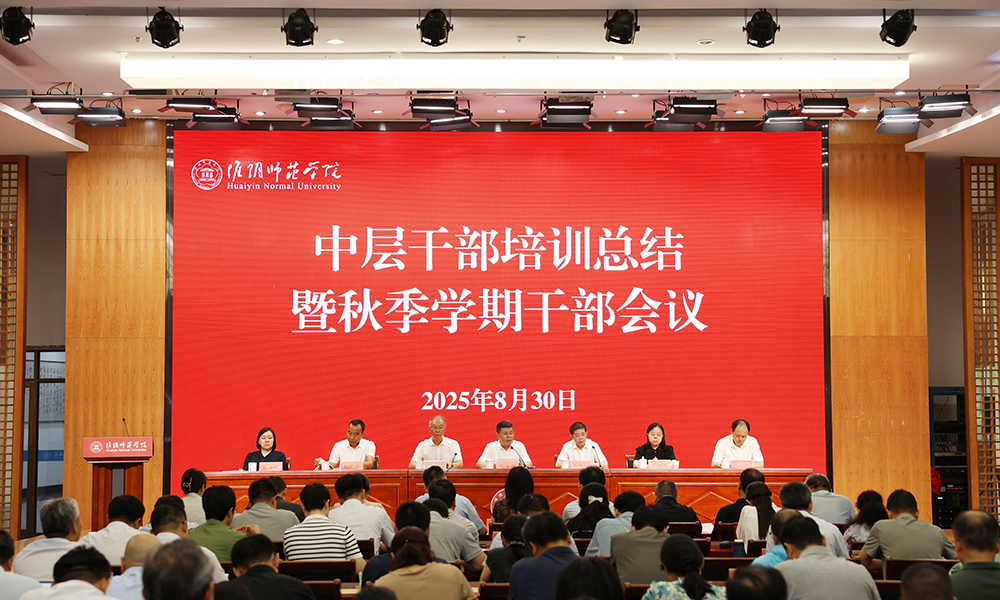 淮师新闻网8月30日电(记者 唐瑀)8月30日上午,淮阴师范学院在长江路校区图书馆多功能厅召开秋季学期干部会议。校党委书记赵宜江主持会议并讲话。校长赵祥祥盘点暑期工作,部署新学期开学和下半年重点工作。校领导、全体中层干部出席会议。