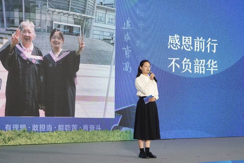 严慧以《扎根溱湖 以青春力量书写新时代文旅答卷》为主题,回顾了自身求学与就业的真实经历,表达了自己将对家乡的深情融入人生选择,以扎根基层的坚守,践行着回报故土的深厚情怀。在发言中,严慧深情讲述了在淮师四年求学时光里来自国家、社会与学校的温暖守护。毕业季,她作为学校就业帮扶的关爱对象,在国家“宏志助航计划”、省级精准培训项目以及校“一人一岗、一生一策”个性化指导的共同助力下,最终,她成功签约家乡泰州的溱湖文旅集团。