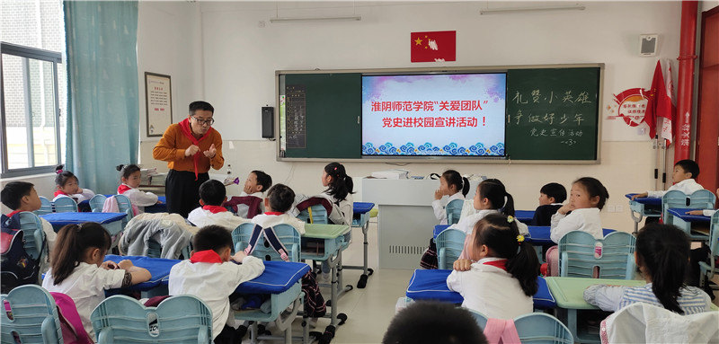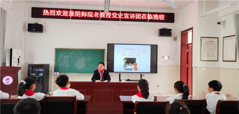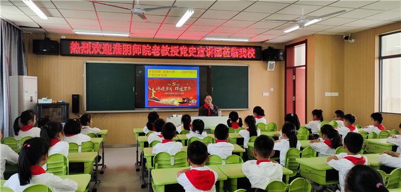 淮师新闻网5月25日电(记者 周辉 孙伟)为贯彻落实习近平总书记关于做好关心下一代工作重要指示精神,推进党史学习教育进课堂、进学生头脑,5月24日,淮阴师范学院关工委“红枫宣讲团”应邀走进淮安市淮安小学西校区,来到小学生中间宣讲党史,全校近千名学生和部分教师分别在报告厅、会议室、教室等7个场地聆听了专题讲座。